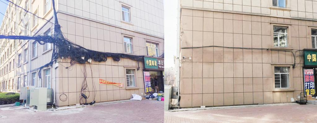 第四阶段:废旧光纤处理。前三个阶段完成后,地下管道光纤已经接通,校园网及运营商业务全部正常通讯,完成校园内路面以上的光纤处理,运营商按楼宇分配任务共同完成废旧光纤回收处理。此阶段工程2024年2月完成。